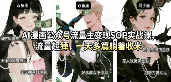 AI漫画公众号流量主变现SOP实战课,流量超猛,制作简单,一天多篇躺着收米