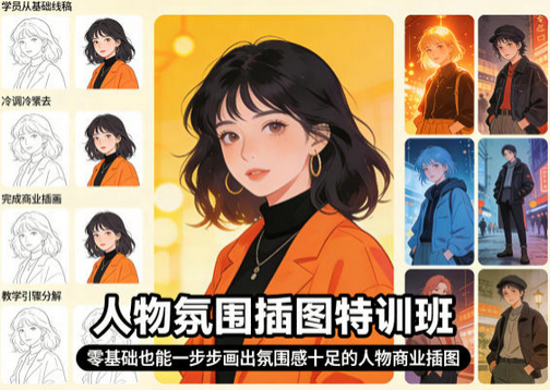 本次《人物氛围插图特训班》,专为零基础小白量身打造,彻底打破“绘画难、没氛围、接不到商业单”的困境,以“一步步教学、实战特训”为核心,从基础绘画技巧、氛围营造方法,到商业插图适配、接单技巧,全程手把手带教、系统化特训,不堆空泛理论、不玩套路,让零基础小白也能循序渐进,逐步掌握人物氛围插图的核心画法,画出氛围感十足、符合市场需求的商业级人物插图,轻松开启技能变现之路。​