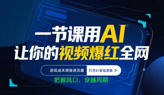一节课用AI让你的视频爆红全网,超低成本测赛道流量,打开AI变现思维,把握风口,穿越周期