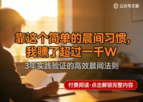某公众号付费文章:靠这个简单的晨间习惯,我賺了超过一千W