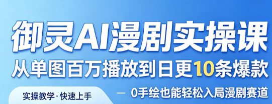 御灵AI漫剧实操课,专为想入局漫剧赛道、零基础无手绘基础的创作者量身打造,以“实操落地、快速出爆款、轻松变现”为核心,用10节系统干货课,带大家从0到1掌握AI漫剧全流程技巧,实现从单图百万播放到日更10条爆款的突破,无需手绘功底,也能轻松抢占漫剧流量风口。