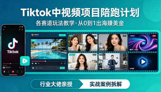 某大佬的Tiktok中视频项目陪跑,涵盖TK各个赛道玩法教学,从0到1出海賺美金