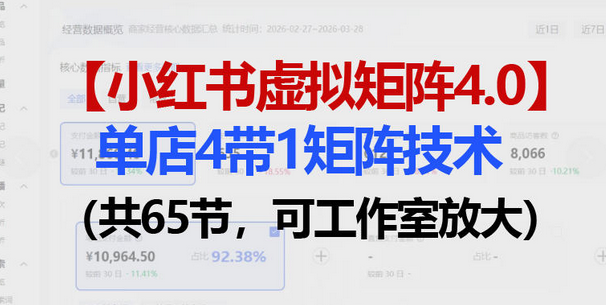 小红书虚拟矩阵4.0技术:单店4带1矩阵(共65节,可工作室放大)