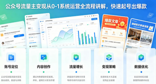 公众号流量主变现从0-1系统运营全流程讲解,快速起号出爆款