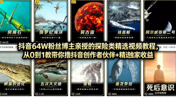抖音68W粉丝博主的AI万物科普视频,从0到1做科普短视频,拿抖音创作伙伴计划+精选独家收益