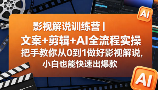 影视解说训练营|文案+剪辑+AI全流程实操,把手教你从0到1做好影视解说,小白也能快速出爆款