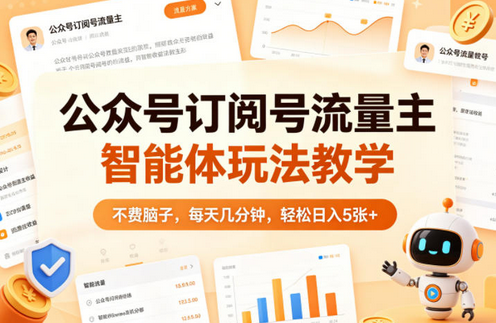 免责声明:站内部分内容由互联网用户自发贡献,该文观点仅代表作者本人。本站仅提供信息存储空间服务,不拥有所有权,不承担相关法律责任。展示内容仅作为学习交流使用,其版权归出版公司或原作者所有,本站不对所涉及的版权问题负责。如原作者认为侵权,请联系我们,我们会立即删除文章!蜗牛学社 » 公众号订阅号流量主智能体玩法教学,不费脑子,每天几分钟,轻松日入5张+