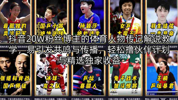 抖音20W粉丝博主的体育人物传记解说教学,易引发共鸣与传播,轻松撸伙伴计划与精选独家收益