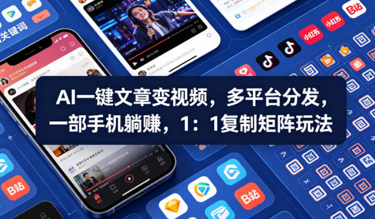 Ai一键文章变视频,多平台分发,一部手机躺賺,1:1复制矩阵玩法