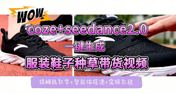 免责声明:站内部分内容由互联网用户自发贡献,该文观点仅代表作者本人。本站仅提供信息存储空间服务,不拥有所有权,不承担相关法律责任。展示内容仅作为学习交流使用,其版权归出版公司或原作者所有,本站不对所涉及的版权问题负责。如原作者认为侵权,请联系我们,我们会立即删除文章!蜗牛学社 » coze+即梦seedance2.0一键生成服装鞋子带货种草视频!全流程保姆级教学