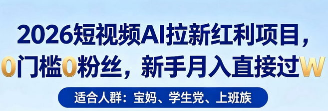 2026短视频AI拉新红利项目,0门槛0粉丝,新手月入直接过1W