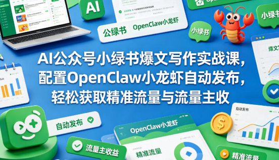 AI公众号小绿书爆文写作实战课,配置OpenClaw小龙虾自动发布,轻松获取精准流量与流量主收益