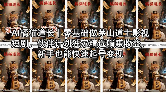 AI橘猫道长|零基础做茅山道士影视短剧,伙伴计划独家精选躺賺收益,新手也能快速起号变现