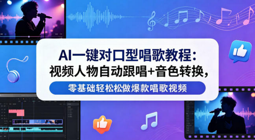 AI一键对口型唱歌教程:视频人物自动跟唱+音色转换,零基础轻松做爆款唱歌视频