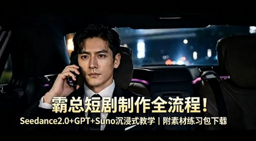 霸总短剧制作全流程!Seedance2.0+GPT+Suno沉浸式教学|附素材练习包下载