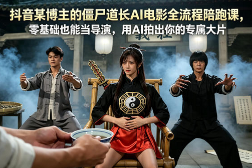 抖音某博主的僵尸道长AI电影全流程陪跑课,零基础也能当导演,用AI拍出你的专属大片