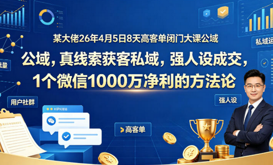 某大佬26年4月5日8天高客单闭门大课公域,真线索获客私域,强人设成交,1个微信1000W净利的方法论