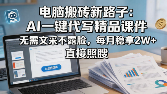 电脑搬砖新路子:AI一键代写精品课件,无需文采不露脸,每月稳拿2W+,直接照搬