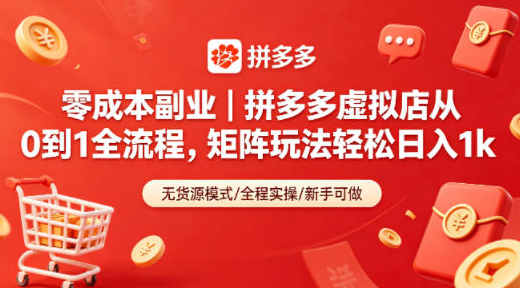 零成本副业|拼多多虚拟店从0到1全流程,矩阵玩法轻松日入1k