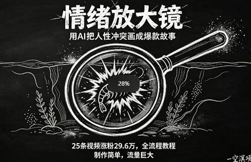 AI制作“情绪放大镜“视频,25条视频涨粉29.6W粉,流量巨大,制作简单,全流程教程